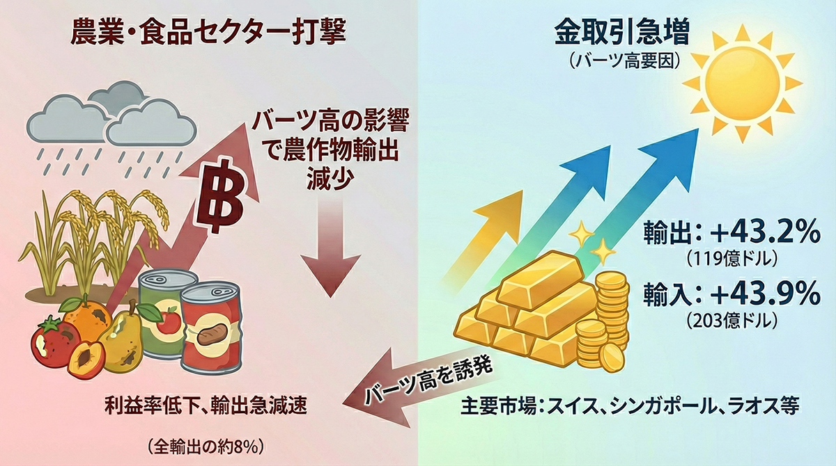 金取引がバーツ高を誘発、農業・食品セクターに打撃