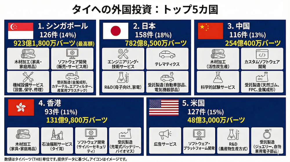 3. シンガポール:126件(14%)、投資額923億1,800万バーツ(トップ5中最高額)