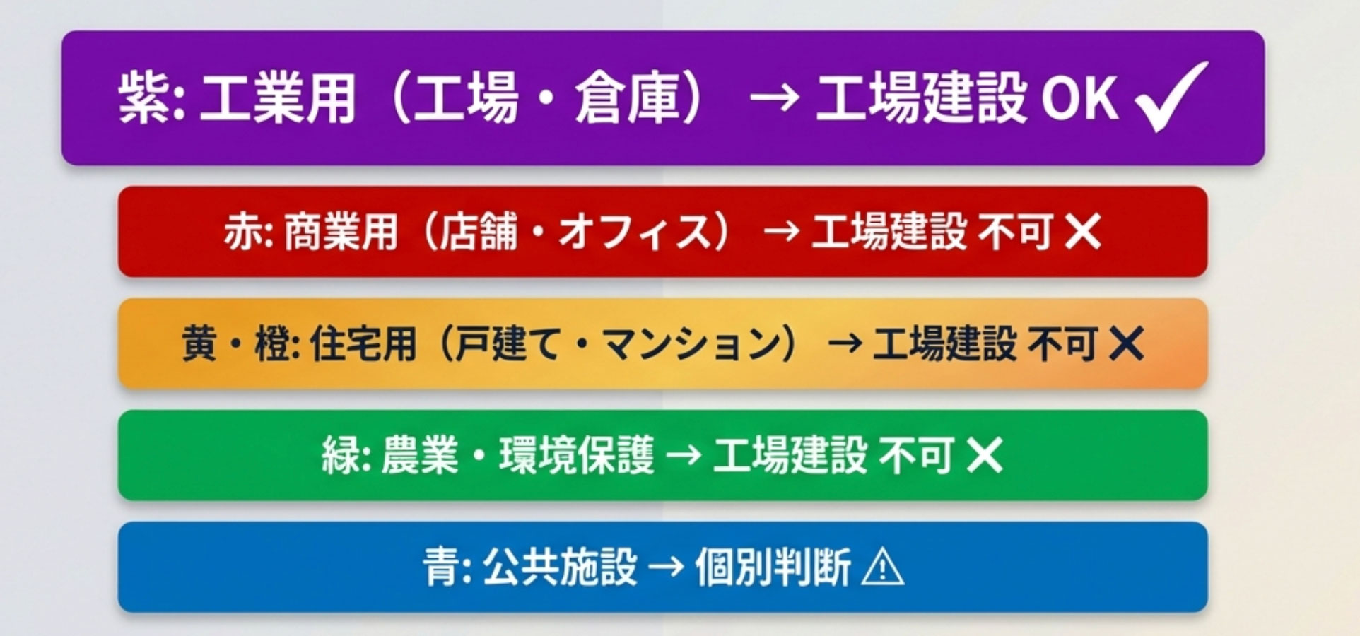 - 都市計画上の工業用途地域(紫カラーゾーン)内の土地であること