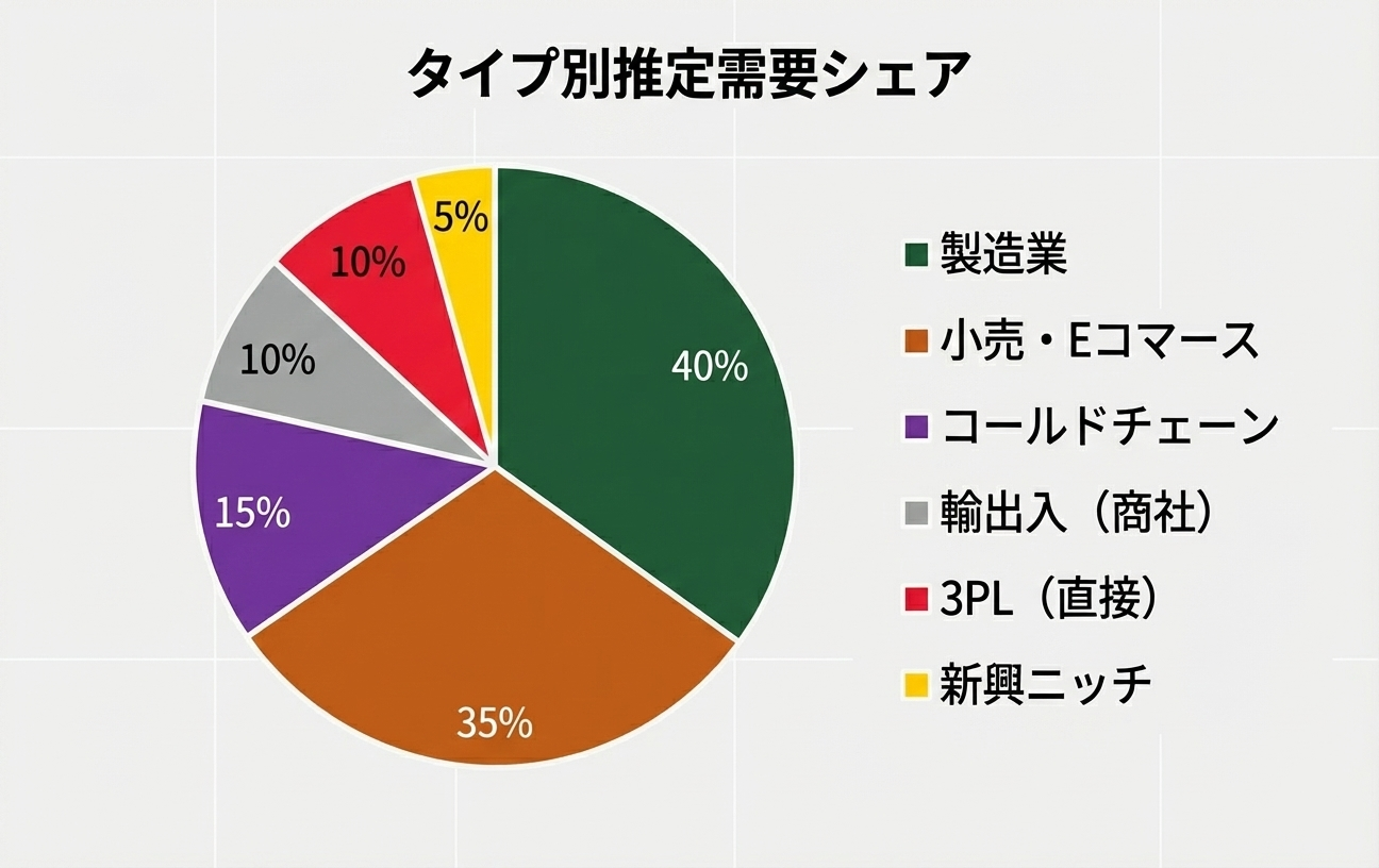 供給拡大に伴い、完成済み倉庫への需要は以下のように明確な市場セグメントへと分化している。